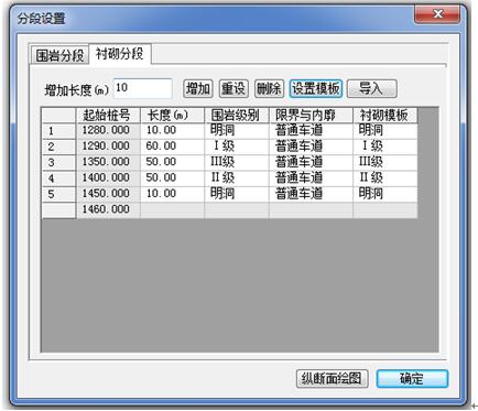 (3)用户可基于围岩分段数据,快速完成衬砌分段,并输出围岩及衬砌分段纵断面图;