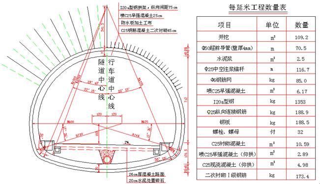 (8)系统根据隧道衬砌分段设计数据、各衬砌装配长度、洞门设计数据等自动计算并统计隧道任一段工程数量或隧道整体工程数量,并生成对应的工程数量统计表。