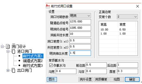 (3)系统提供专门的、基于BIM核心的隧道洞门三维布设功能,有效破解隧道洞门布设与周边地形、山势等合理配合的难题
