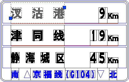 如图3所示标志,文字高度50,最大宽度设为5,将使用间距分别设置为150、50、30、15,即在使用间距处输入3、1、0.6、0.3。现在我们依次将“汊沽港”改为廊坊、武清城区、杨王村公路等,此时可以看到文字跟随字数的改变,间距和高宽比也会跟着自动改变,而总长度和文字位置不会变化,版面整体样式没有受到任何影响,如图5。“使用间距”可以综合最大宽度、文字字高、文字个数以及常用间距来设置。