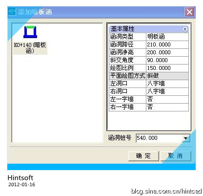 1.打开纬地涵洞软件,添加此桩号的涵洞类型,设置其跨径、净高、斜交角度等基本参数。如下图所示:
