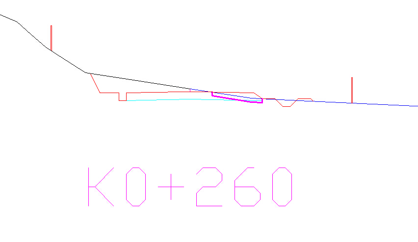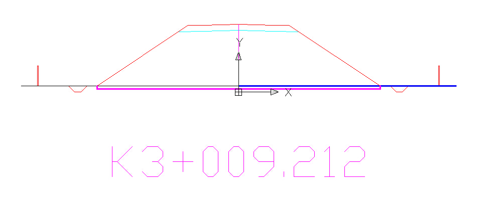 在标准断面中,执行偏移(offset)命令,根据提示输入偏移距离(也即清表厚度,如0.3m),然后选择右侧地面线,向下进行偏移,系统即可自动生成清表自定义实体(请注意,该处必须为右侧地面线,且向下偏移)。