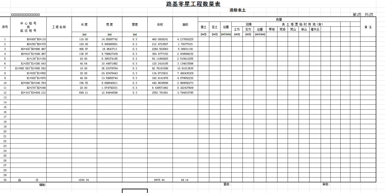 完成路基设计后,我们可以通过模板定制的方式,将清表土对应数量在土石方数量表中予以体现(系统安装目录下有该模板,需要的可以指定后出表),也可以单独定制清表统计表的汇总模板,单独输出清表工程数量及压实面积等数量。单独输出清表统计表的命令为:HQBTJB,根据提示指定模板即可。模板下载链接如下:链接:http://pan.baidu.com/s/1c0B89FE密码:am9q