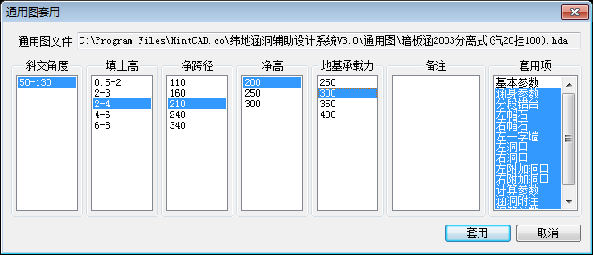 2. 增加涵洞通用图属性和套用通用图对话框中备注过滤功能,使套用参数较多时可使用备注进行筛选。使通用图套用功能更加方便快捷。