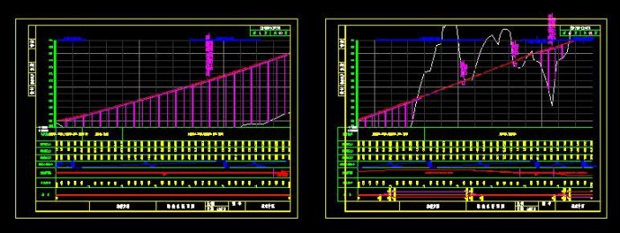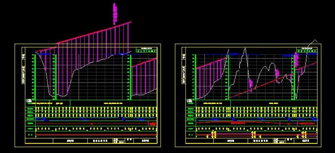 先看个图,由于地面起伏较大,断面多次断高,但设计线依然跑出图框范围,山区的项目该类情况并不少见,这种情况,我们无论手工拼接设计线和地面线, 再调整标尺,还是选择不断高,自己手工断高,设置标尺,都会产生非常大的手工编辑量,并且,设计线一旦微调,一切回到解放前。。。。关于困扰,此处不再展开,我们回到如何解决上来吧。