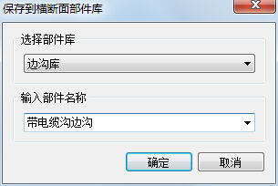 选择蓝色部件设计线后,系统自动弹出部件库添加窗口,选择部件库为边沟库,输入部件名称后点“确定”,如下图3: