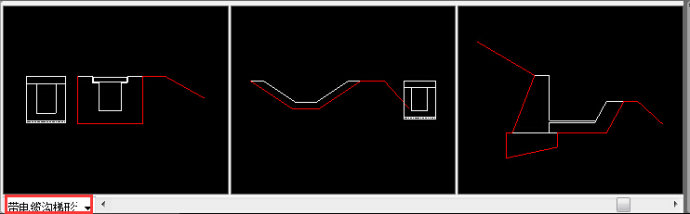 带电缆沟的边沟部件模板添加成功后,即可实时调取并应用于横断面中,如下图8;通过边沟等部件模板的定制,可在横断面图中实现边沟的细部构造断面图的绘制,显得非常方便和灵活。