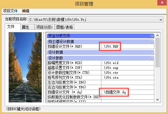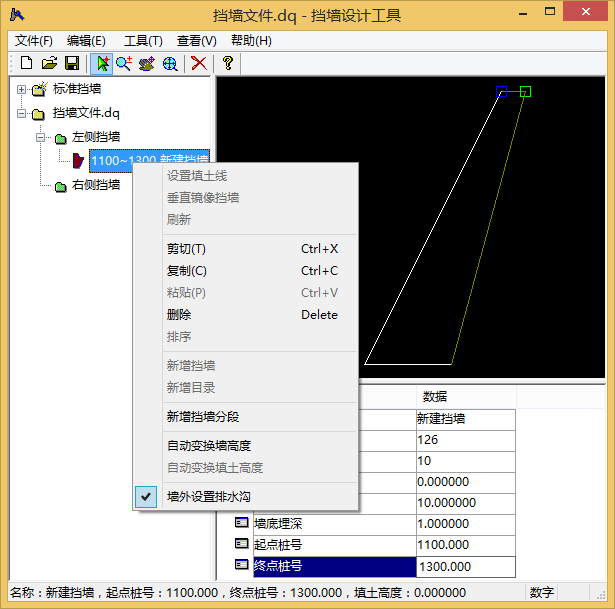 二是通过“纬地挡土墙设计”软件进行设计添加,设置完成,点击保存项目,系统自动生成挡土墙设计文件*.DQD文件,并保存至项目路径下,如图2所示;