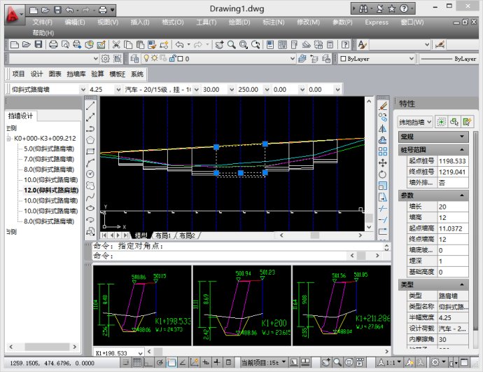 至此,您应该对挡土墙填土线的设置对横断面土方量的影响有更深一步的认识了吧!