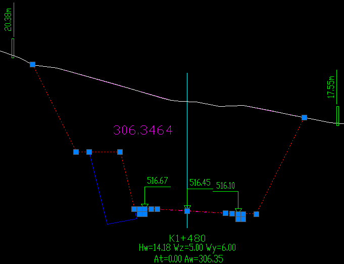 至此,关于支挡构造物处理或者纬地挡土墙设计的设置说明白了,下面我们就日常技术支持中,用户关于挡土墙设置对计算横断面土石方量影响的地方进行详细的说明:
