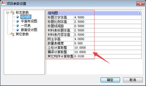 二、对于其它标题、附注、材料表、立柱计算精度等绘图参数的设置,还可以打开“项目”菜单下面的“项目参数设置”窗口来设置。