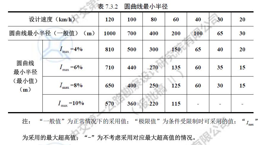 1、修订与各级公路不同设计速度对应的、采用不同最大超高时的圆曲线最小半径指标(最小值)。修订纠正了以往可能存在的圆曲线最小半径指标与最大超高采用值不对应的问题。【以下是具体条文内容】