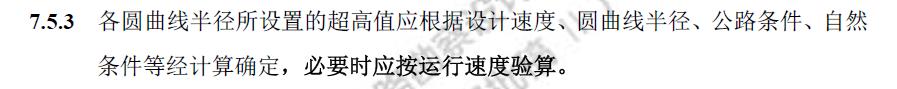 2、修订强调各级公路圆曲线半径对应的超高采用值,必要时应按运行速度进行验算;使得圆曲线超高采用值与路段实际运行速度保持一致性,有益于提高路段行车的安全性。【以下是具体条文内容】