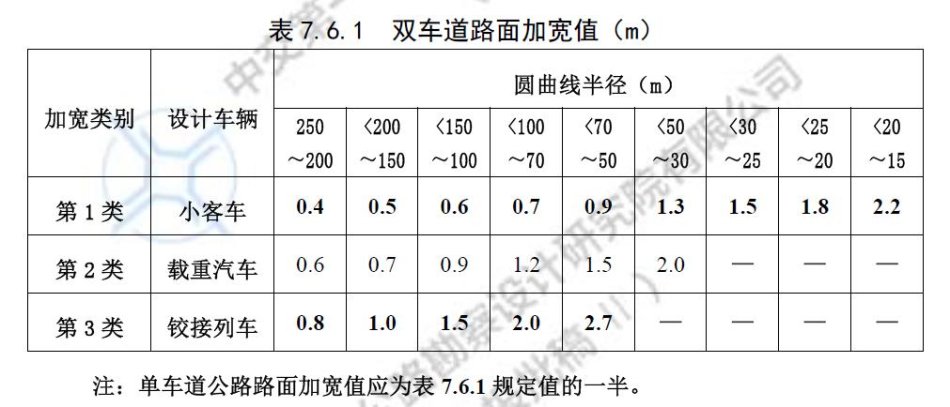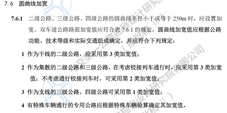 3、与新《标准》修订的公路设计车辆相互对应,对各类双车道公路的路面加宽值进行修订调整,使得公路几何设计紧随我国公路车型组成的变化。【以下是具体条文内容】