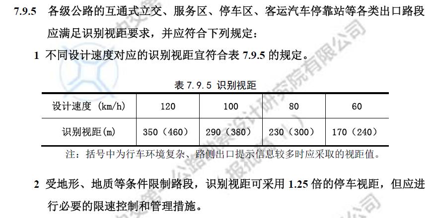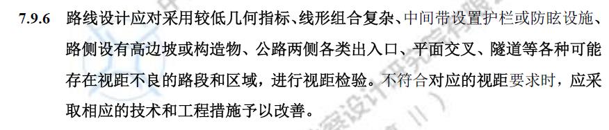 4、强调各级公路各类出入口处应满足必要的识别视距要求,同时给出识别视距指标数值;强调各类复杂路段应进行视距检验,并采取相关的措施等。【以下是具体条文内容】