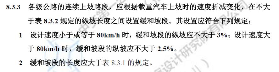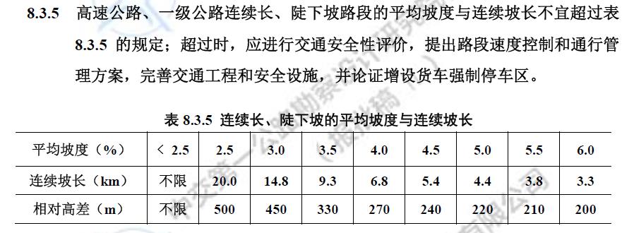 5、首次提出高速公路和一级公路的连续长、陡下坡的检验性指标(或称为“界定性指标”),即平均坡度与连续坡长指标。同时,修订给出了公路连续性上坡路段的缓和坡段的设置原则、坡度与坡长等指标要求。这是本期规范修订的最重磅内容之一,也是当前实际困扰全国各地山区高速公路设计的关键性技术内容。【以下是具体条文内容】