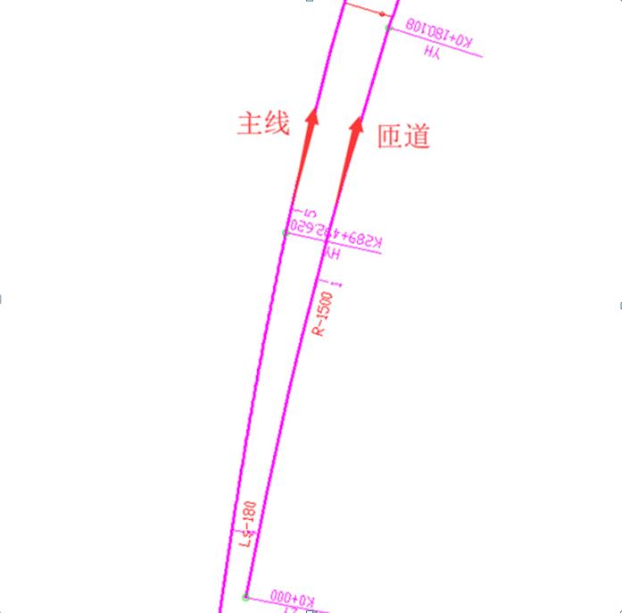 以项目数据为例,推算匝道临界纵横坡度值及设计高程,左线为主线(正线.prj),右线为匝道(D-D匝道.prj)。