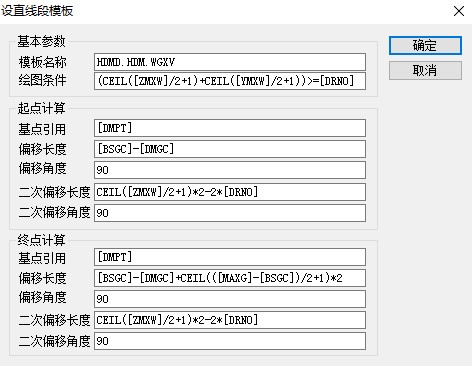 直线模板定制,执行命令: “SETLIP”,然后根据命令行提示,选择直线模板;在线模板设置对话框中,我们需定义模板头、合理给定绘图条件及直线起终点位置。合理选择基点及关键字,灵活的设置偏移参数及绘图条件,是模板定制的关键。定制模板前,建议用户时先打开软件内置数据库,认真分析相关基点及关键字,并熟悉掌握纬地内置的相关函数。这些是模板定制的基础。关于横断面网格线所需相关关键字及函数,上面已经做了专门解释,熟悉了对应基点与关键字后,就可以正式开始定制啦。