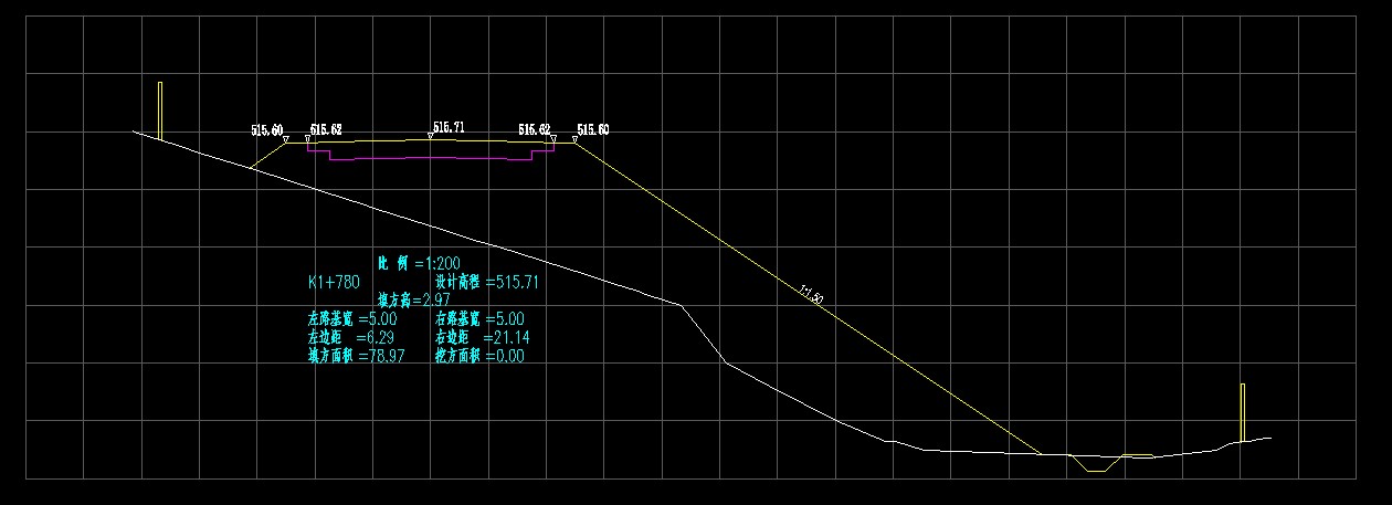 到这里,横断面网格标注标签过程,就基本完成了。以下是应用横断面设计模板输出图纸的图纸,看看效果吧: