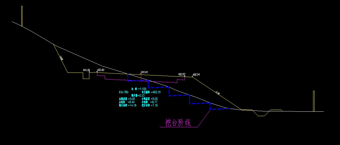 多段线定义步骤同上,下面以右侧填方边坡为例,对比绘图多段线及面积计算多段线定义。