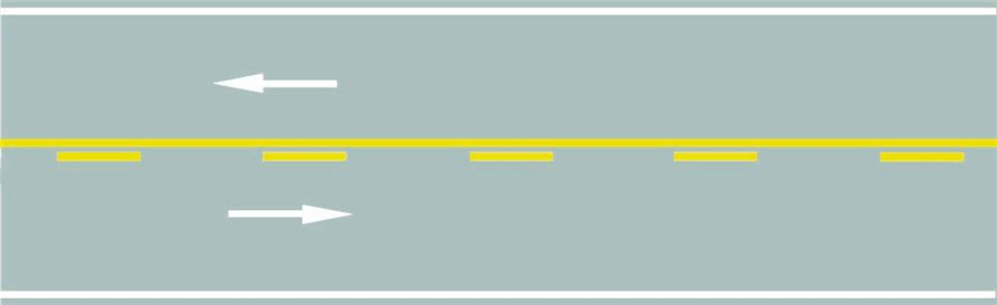 4、另外,关于双车道圆曲线路段的对向车道分界线,在施划时,一定要根据实际视距情况,施划对应的、适用的标线。如果双向视距均满足超车等需要时,可施划单黄虚线;如果只允许外侧车道超车时,则应施划黄色虚实线;若该路段整体视距不能满足超车需要时,即双向均不允许超车时,应施划单黄实线或双黄实线。