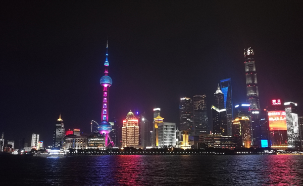 每天任务完成之时,便是夜色降临之时,我们此时便有机会领略传说中的大上海美丽夜景。乘车路过外滩时,华灯初放,在各种霓虹灯的映衬下,各具特色的建筑更显得美轮美奂,不得不说此时的外滩显得分外迷人,东方明珠塔高高的耸立在夜空中,它像一颗璀璨的明珠,镶嵌在黄浦江畔,在夜空中闪闪发光。看到熙熙攘攘的人群轻轻倚靠在江边栏杆,任凭晚风拂面,眼前的景色应该是缓解疲劳的最好良药。