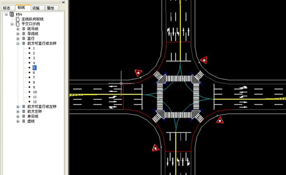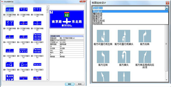 2、系统内置《中华人民共和国国家标准—道路交通标志和标线》中的各种标志、牌版面、标线、及各种安全设施供用户选用;