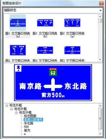 【内置标志版面】内置GB5768-2009《中华人民共和国国家标准_道路交通标志和标线》中的各种标志牌标准版面图,方便用户直接选用进行设计;标志牌版面按照九种类型划分,包括警告标志、禁令标志、指令标志、指路标志、高速标志、旅游标志、辅助标志、告示标志、地方标志等版面类型,且支持各种特殊类型标志的自定义添加。