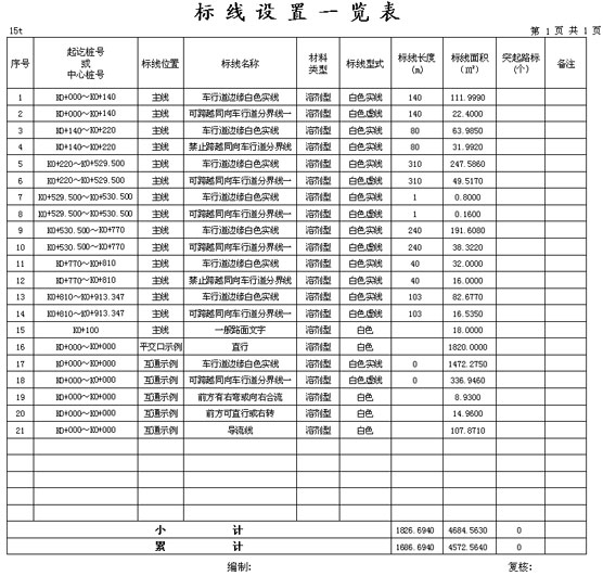 5、智能化的数据、图纸关联,快速输出标线汇总数量表,标线大样图,标线平面设计图;