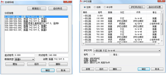 6、基于规范,根据路线数据文件,自动进行路线纵向标线及各安全设施的布设,充分的利用路线数据文件,最大限度的提供设计效率;