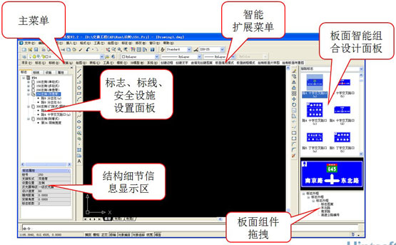 纬地交通与安全工程CAD系统(HintJT)是我公司结合工程设计实践针对各等级公路及市政道路开发完成的一套专业的交通工程设计软件系统,其主要功能包括:各种类型标志的快速布设;各种类型标志的快速统计(CAD图表和Excel表);快速绘制项目中所用到的标志平面布设图、安装图、结构图、版面设计图;各种标志牌版面的快速设计;各种类型标线的快速布设;标线数量及图表的统计输出等。